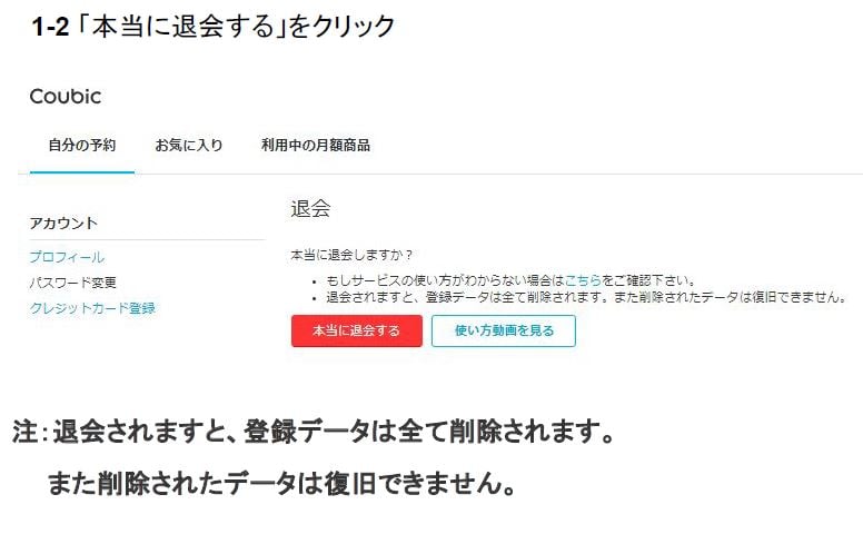 2・[本当に退会する]をクリック